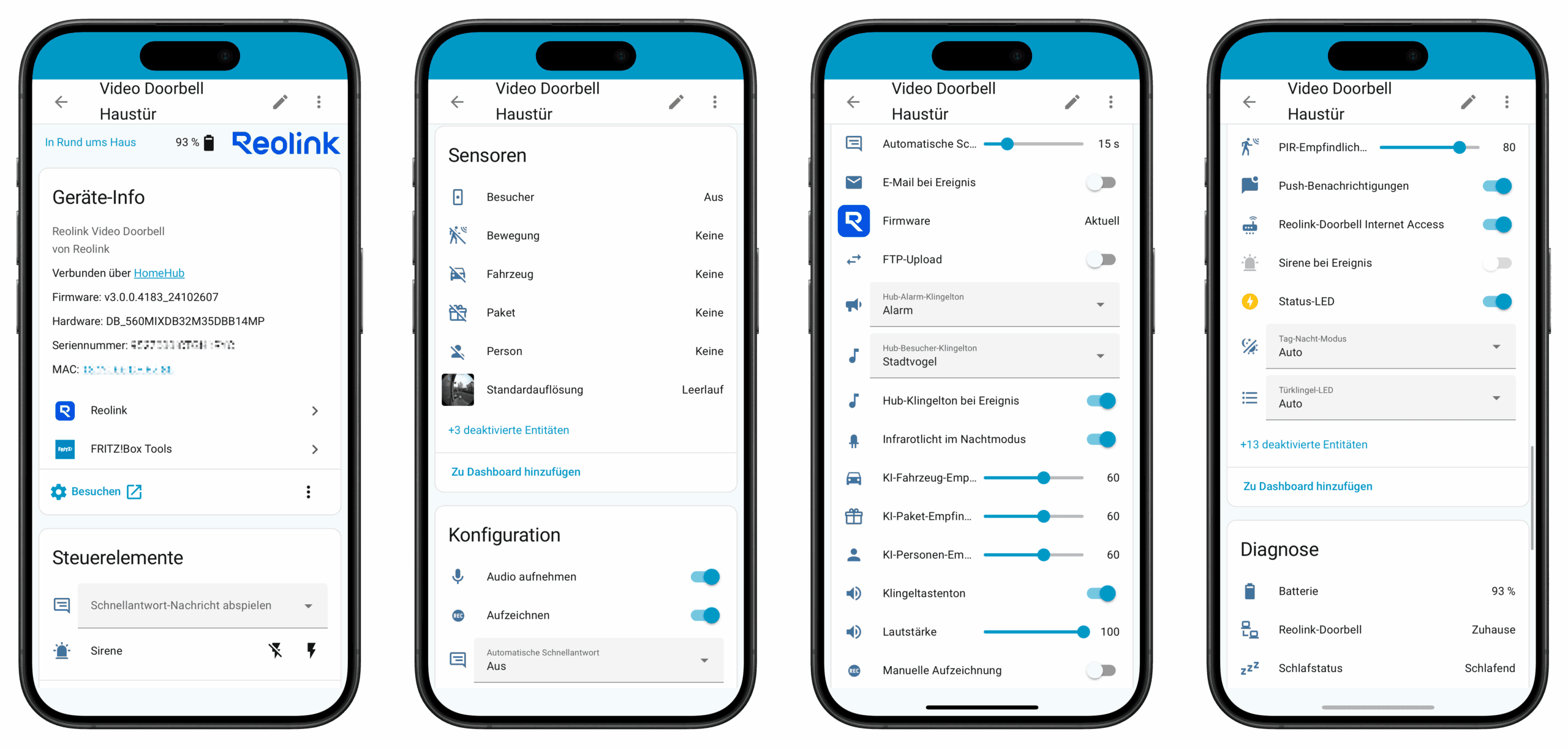 Die Funktionen von Amazon und Google sind ja ganz praktisch, aber echte Smart Homies wollen deutlich mehr. Reolink wäre bei dieser Nutzergruppe nicht so beliebt, wenn sie dieser Community nicht deutlich mehr zu bieten hätte. Für Home Assistant steht daher eine erstklassige Integration zur Verfügung, die den Kamerastream, alle Sensoren sowie zahlreiche Einstellungsmöglichkeiten einbindet und für Live Ansicht, Automationen und weitere Integrationen nutzbar macht. Dadurch ergeben sich unzählige Möglichkeiten, die Kamera ins eigene Smart Home einzubauen. Über eine Automation war es mir dann sogar möglich, die Funktion „parallele Aufnahme“ umzusetzen, die mich lange bei Ring gehalten hat.