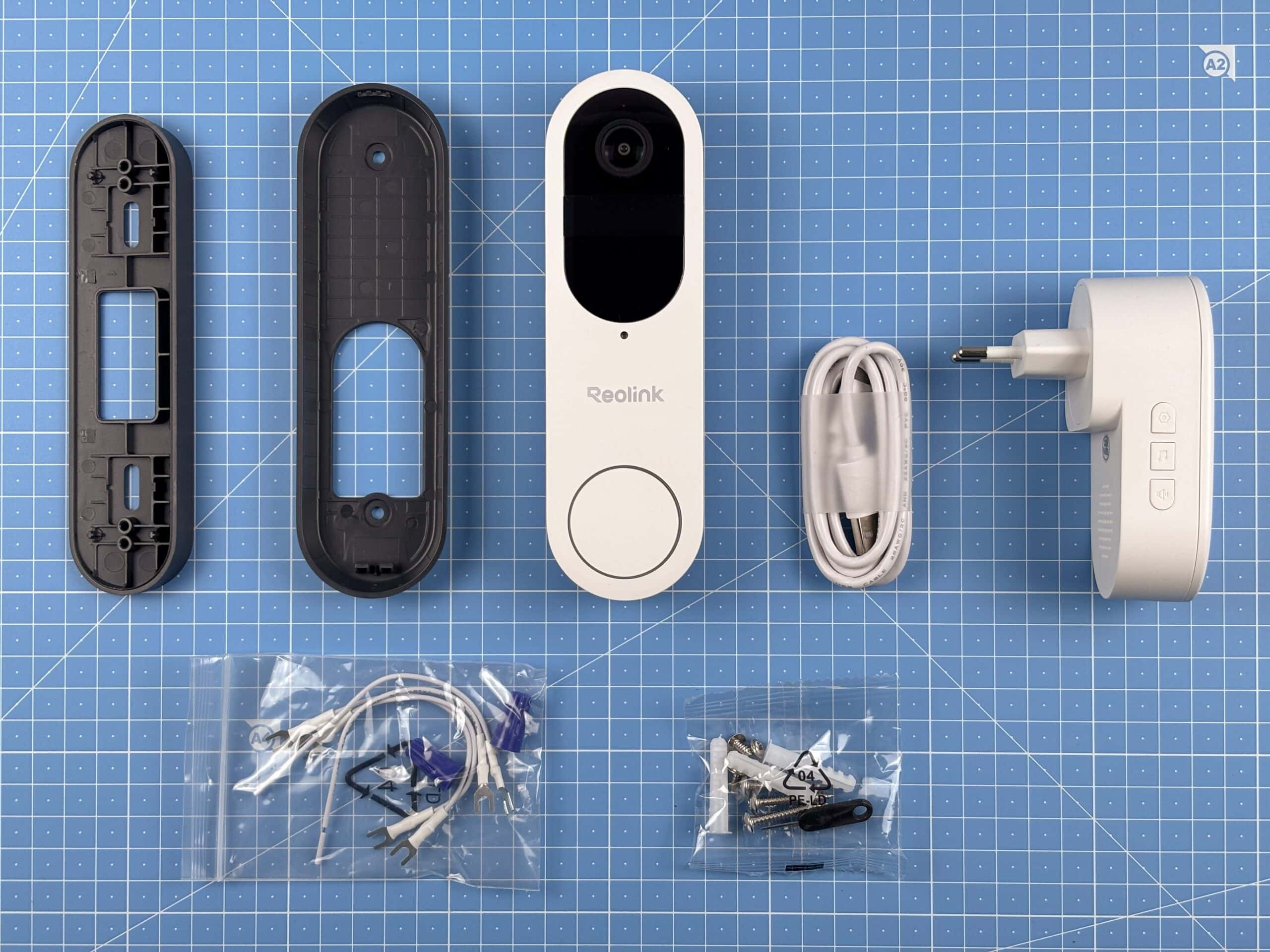 Im Lieferumfang ist alles enthalten, um die Doorbell fest an der Wand zu montieren. Schrauben, Dübel und eine Bohrschablone sind dabei, also alles, was man braucht. Klebepads für eine schraubenlose Montage fehlen allerdings, offenbar sieht Reolink das nicht nicht vor. Gerade in Mietwohnungen kommt meist aber nur kleben in Frage. Anschlusskabel für eine vorhandene Klingel beziehungsweise ein Netzteil liegen ebenfalls bei. Wer an der Haustür bereits Dauerstrom zur Verfügung hat, sollte dennoch überlegen, direkt zum batterielosen Modell zu greifen. Die mitgelieferte Montageplatte kann durch ein 15 Grad Winkelstück ergänzt werden, um die Kamera besser auszurichten. In meinem Fall waren die 15 Grad jedoch zu wenig, weshalb ich ein selbst gedrucktes 30 Grad Winkelstück genutzt habe. Die 3D Druckdatei gibts für knapp 5€ bei Cults3D zum Download.