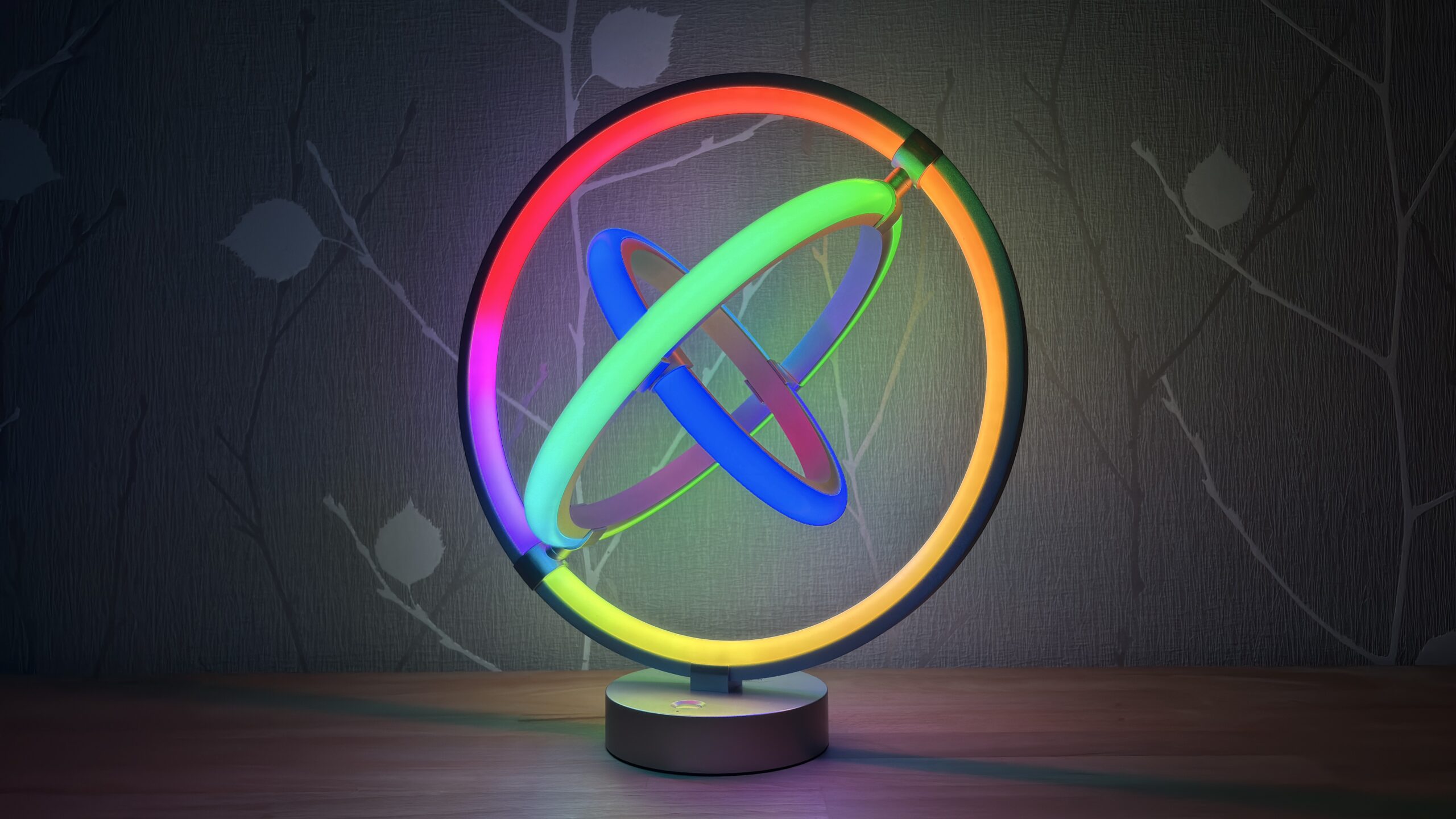 Optisch unterscheidet sich die Lepro TB1 deutlich von klassischen Tischlampen. Aber genau das ist auch ihr größtes Alleinstellungsmerkmal. Statt eines klassischen Lampenkopfes setzt der Hersteller auf drei kreisförmige LED Ringe, die ineinander angeordnet sind. Die Konstruktion erinnert ein wenig an ein Gyroskop und sorgt dafür, dass die Lampe eher wie ein Designobjekt wirkt als wie eine typische Tischlampe.
