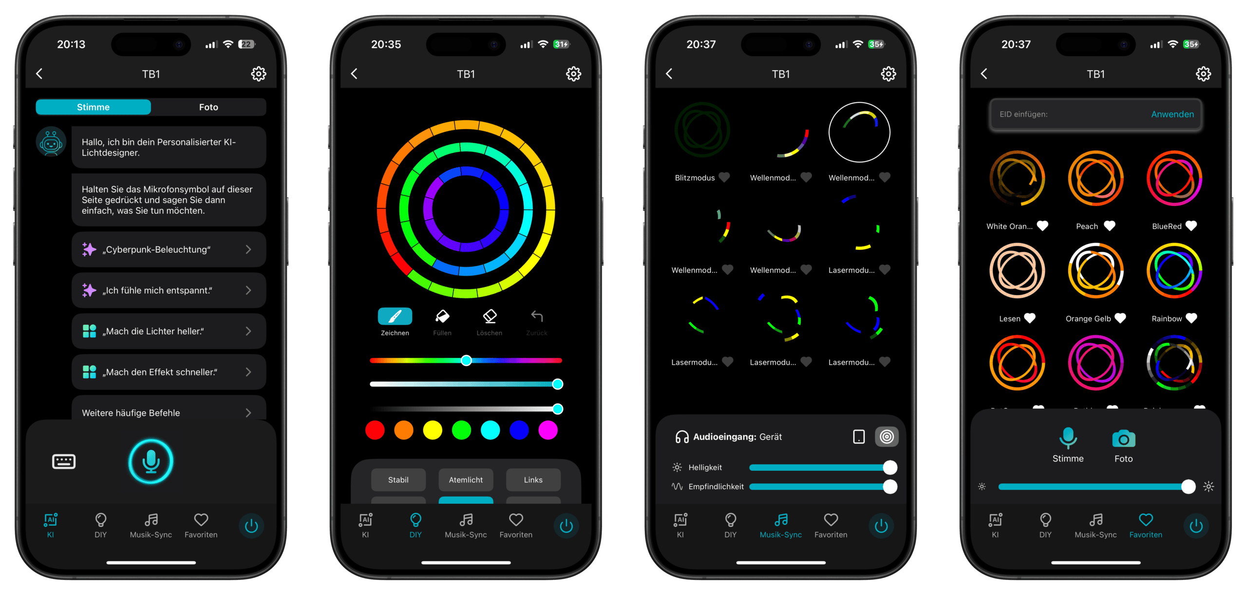Das spannendste Feature ist allerdings die KI gestützte Lichtgenerierung namens LightGPM. Die Idee dahinter ist einfach. In der App wird eine gewünschte Stimmung beschrieben oder ein Bild hochgeladen und die KI erstellt daraus automatisch mehrere passende Farb und Effektszenen. Diese lassen sich anschließend direkt auf die Lampe anwenden. Zusätzlich nimmt LightGPM auch Sprach und Textbefehle entgegen, um grundlegende Funktionen der TB1 zu steuern.
